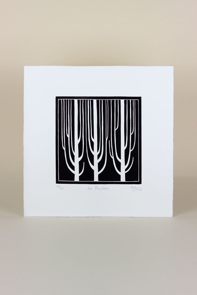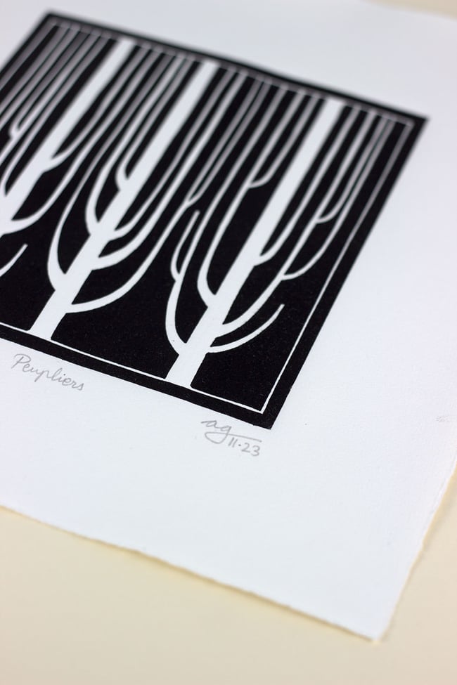 Linocut print in black ink